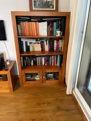 Estantería de madera nueva - Diseño clásico y funcional. - Ideal para organizar libros y objetos decorativos. - Amplio espacio de almacenamiento. Con un armario inferior. Muy funcional MEDIDAS 1 metro x 1,51 m x 37 cms de fondo Vendo también un mueble de TV a juego.