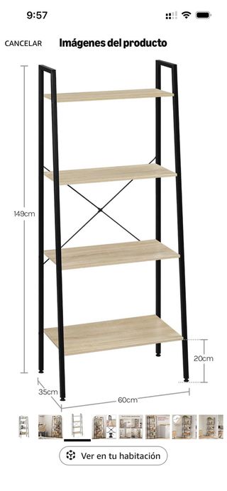 Estantería de madera con un diseño moderno y funcional, ideal para cualquier espacio. - Diseño de escalera. - Múltiples baldas para almacenamiento. - Acabado natural de la madera.