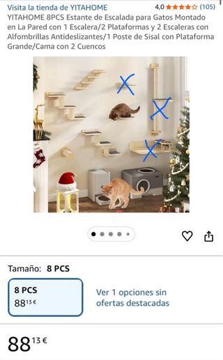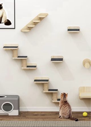 Set de 5 piezas de estantería de escalada para gatos, ideal para montar en la pared. Incluye escaleras y plataformas. - 1 Escalera - 1 Plataformas - 2 Escaleras con plataformas - 1 rollo rascador