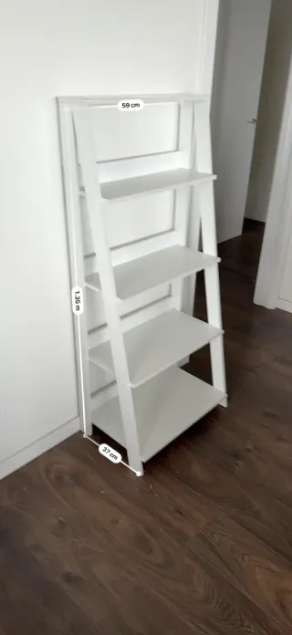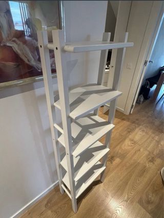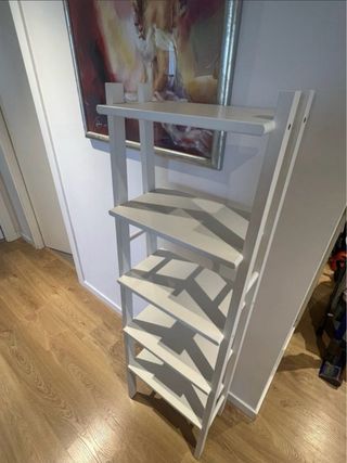 Estantería tipo escalera de la colección Vilto de Ikea. Su diseño en forma de escalera la hace muy práctica y decorativa. - Estructura de madera. - Color blanco (descatalogado). - En perfectas condiciones y muy bien conservada (ni golpes ni ralladas).