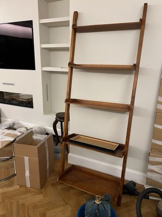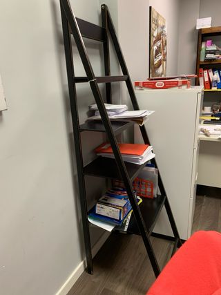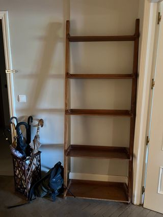 Estantería de diseño tipo escalera con acabados en madera. - Estructura robusta. - Múltiples baldas para almacenamiento. - Estilo moderno y funcional. Tiene un mínimo toque en la esquina que se ve en la foto. Precio negociable