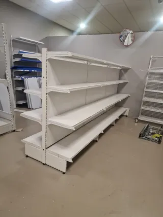 Se venden estanterías tipo góndola, ideales para comercios o almacenes. Son modulares y fáciles de montar. - Estructura principal de metal. - Color blanco -