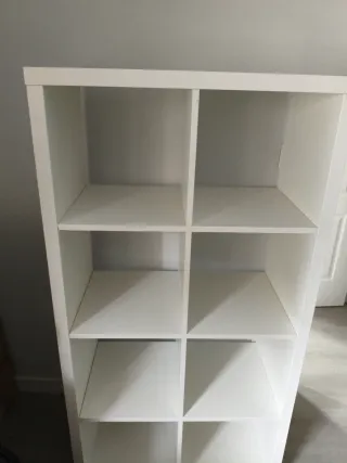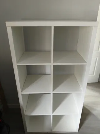 Estantería modular Kallax de Ikea, ideal para organizar tus espacios. Tengo 2 unidades, 30€ cada una o 50€ las dos. Cajas 6 unidades a 10 euros - Diseño de 8 cubos. - Acabado en blanco.