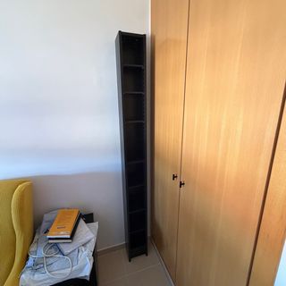Estantería alta y estrecha de Ikea, perfecta para aprovechar el espacio. - Diseño moderno y minimalista. - Múltiples baldas para almacenamiento.