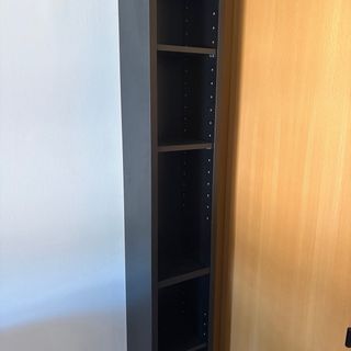 Estantería alta y estrecha, perfecta para almacenar CDs, DVDs o libros. - Diseño moderno y minimalista. - Ideal para espacios reducidos.