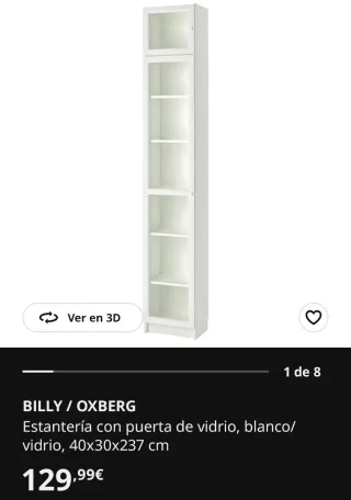 Tengo 1 unidad de Librería billy de Ikea blanca para mayor capacidad de almacenamiento sin altillo Con altillo : + 15€ Medidas sin altillo · Ancho: 40 cm · Fondo: 28 cm · Altura: 202 cm Precio actual sin altillo : 65€ La Billy tienes algunos desperfectos por uso