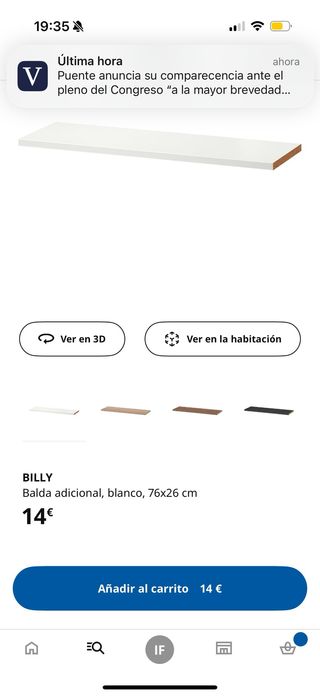 Se vende balda adicional billy 76x26cm precintadas y sin abrir. Compradas por error. (Precio original 14)