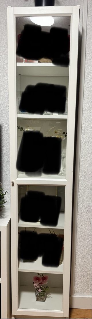 Librería con puerta de vidrio, negro efecto roble, 40x30x202 cm. La librería BILLY es un icono que, gracias a su versatilidad, se puede usar de muchas formas en casa. Con una puerta panelada/de vidrio podrás exponer tus objetos y ocultar el desorden tanto en el salón como en el comedor. Se vende montada y no se hacen envíos . 📍Recogida Calle montes de barbanza ( Villa de Vallecas ). Hay ascensor para que puedan bajarla.