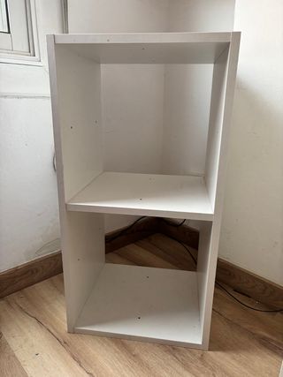 Estantería blanca de Ikea con dos baldas y un cajón inferior. Ideal para organizar tus pertenencias. - Diseño moderno y funcional. - Color blanco. - Incluye dos estantes. - Cajón en la parte inferior.