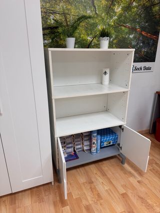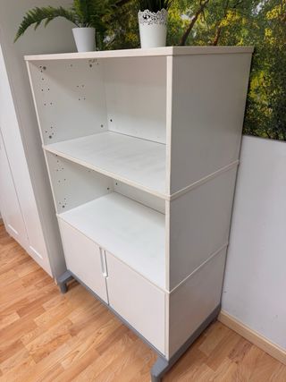 Estantería blanca Ikea. Cuenta con varios estantes y un módulo inferior con 2 puertas. - Diseño moderno - Como nueva - Ideal para organizar libros, archivadores, decoración... - Patas grises Traslado a cargo del comprador. Están en una planta 1 y hay ascensor. NO SE HACEN ENVÍOS
