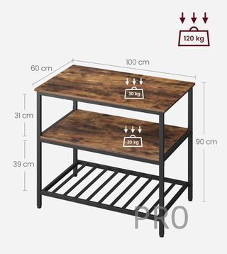 Isla de Cocina con Encimera Grande, Estantería de Cocina de 3 Niveles, Marco de Acero, 60 x 100 x 90 cm, Estilo Industrial, Fácil de Montar, Marrón Rústico y Negro KKI005B01