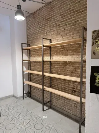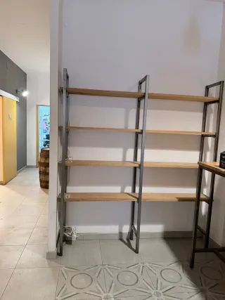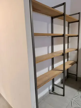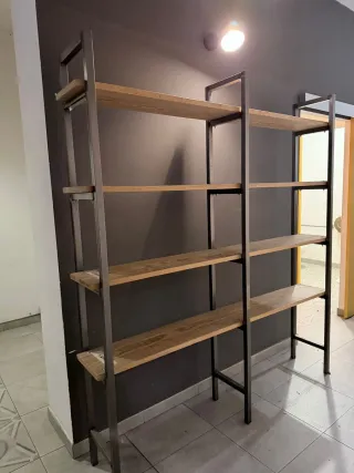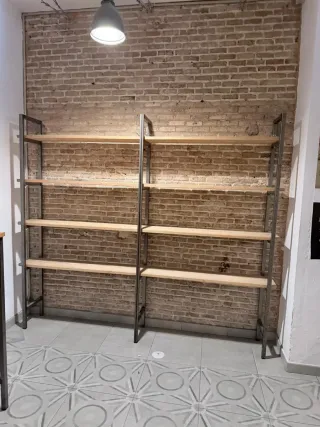 Oferta Marzo!!!!! B/Estantería de estilo industrial con un diseño moderno y funcional. Combina la robustez del metal con la calidez de la madera. **precio Wallapop 1200€* - Estructura metálica resistente. - Baldas de madera. - Diseño de dos cuerpos.