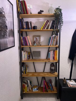 Vendo estantería FJÄLLBO de estilo industrial (metal negro y madera). Es una estantería robusta y muy decorativa, ideal para el salón, despacho o dormitorio. Perfecta para libros, plantas, decoración o almacenamiento. Se vende por cambio de mobiliario.