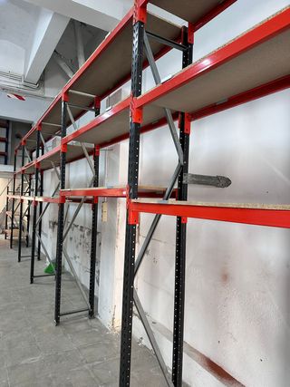 Se venden estanterías industriales de alta resistencia, ideales para almacenes o negocios. - Estructura principal en color naranja. - Compramos y vendemos en toda España - Precios referenciales