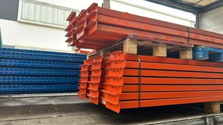Se venden estanterías industriales de gran capacidad, ideales para almacenes o negocios. - Estructura metálica resistente. - Color naranja y azul. - Componentes para montaje. - Compramos y vendemos estanterías en toda España - Precios referenciales