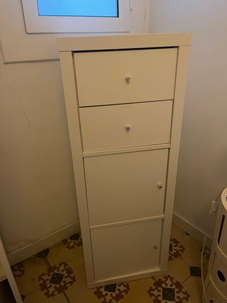 Estantería KALLAX de Ikea con una combinación de cajones y puertas. Valuado en 92,99€ 6 meses de uso - Dos cajones superiores con tiradores. - Dos puertas inferiores con tiradores.