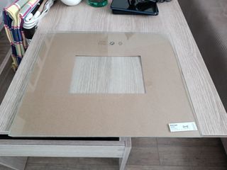 Cristal para estantería Kallax, sin soportes. Con cartón para hacer las muescas.