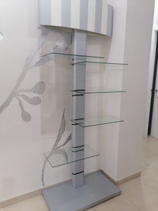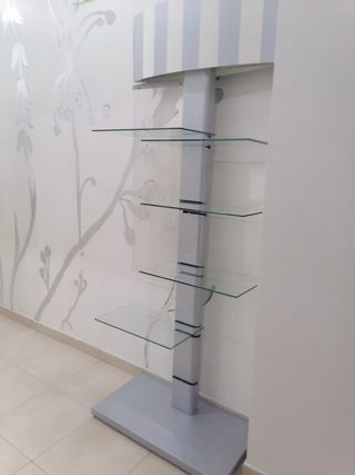Estantería de diseño moderno con estructura metálica y baldas de cristal. Se encuentra en buenas condiciones. - Estructura robusta. - Baldas de cristal.