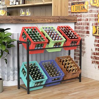 Estantería de acero para almacenar tus cosas. Es robusta y tiene dos niveles. - Capacidad de carga: 150 kg. - Ideal para 6 cajas. METAL DE ALTA CALIDAD: el soporte y el tubo de acero están hechos de material de acero de aleación de alta calidad, impermeable, inoxidable, no corrosivo, no se rompe ni se dobla. Dura hasta 150 kg: el soporte para cajas de cerveza puede contener hasta 150 kg y puede sostener muy bien el peso de seis cajas grandes. Las dimensiones son 105 x 31 x 75 cm. Un ángulo de inclinación adecuado permite que las cajas descansen de forma segura en el estante. B0D9QG6JWH