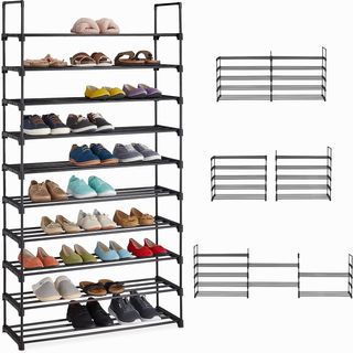 Práctica estantería para organizar zapatos. Puede tener otros usos. No tiene la funda/cubierta de tela. - Diseño de dos niveles. - Estructura de metal resistente.