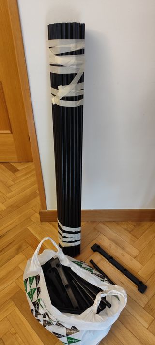 Conjunto de estanterías metálicas de Ikea en color negro. Son piezas versátiles para organizar tu espacio. Larga :115*10 3unidades Corta: 55*10 3 unidades Se venden toda juntas - Diseño moderno y funcional. - Fabricadas en metal resistente.