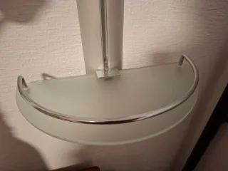 Estantería esquinera de metal con adhesivos para su instalación. - Diseño moderno y funcional. - Incluye adhesivos de alta resistencia.