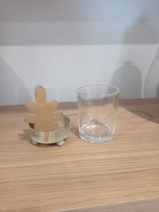Bonito portavela de metal y cristal en perfecto estado pues nunca se ha usado. Ha estado expuesto en una estantería.