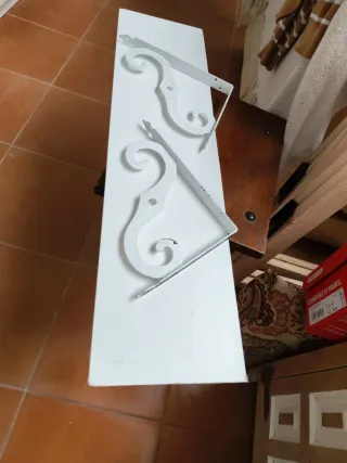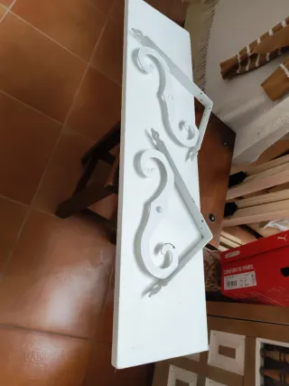 Repisa decorativa con escuadras de forja. - Diseño elegante y rústico. - Combinación de metal y madera. Medidas del tablero: ancho 77, fondo 20