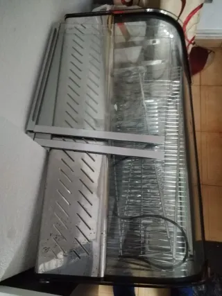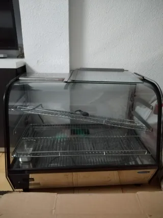 Vitrina expositora con estructura de metal y paneles de cristal. - Diseño moderno y elegante. - Ideal para exhibir productos.