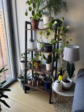 Estantería metálica negra con baldas madera, ideal para plantas de interior. Incluye luces UV / grow lights instaladas para favorecer el crecimiento. En muy buen estado, uso en interior. Se vende sin plantas ni macetas. No se hacen envíos.