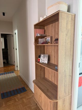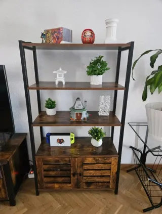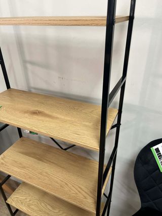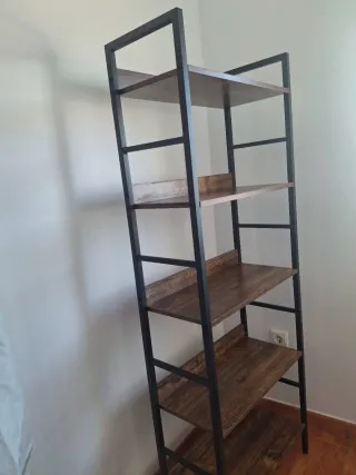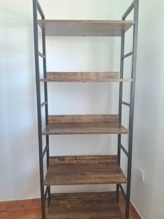Estantería con una combinación de materiales que le da un toque moderno. - Estructura principal de metal. - Detalles y baldas de madera. Entrega en calle del carmen 16