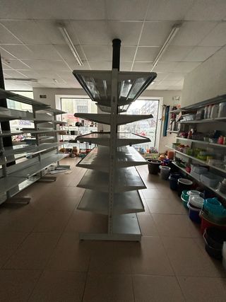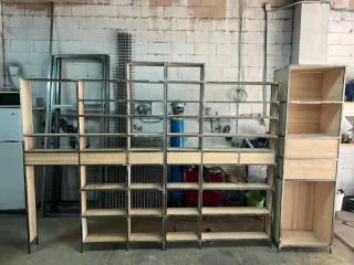 Conjunto de estanterías modulares para tu negocio. Son robustas y versátiles. - Compuesto por 8 módulos. - Medidas de cada módulo: 120x60cm.