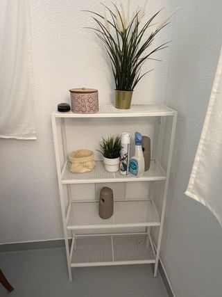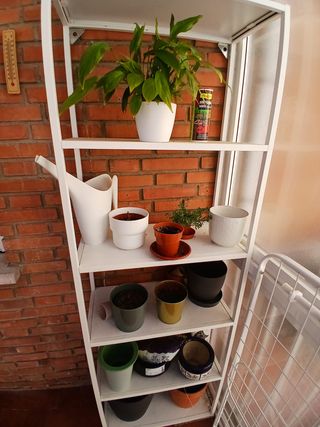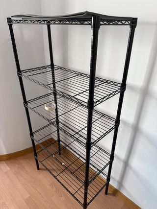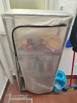 Tengo tres iguales. Cada una 5€. Estantería versátil que se puede usar tanto en interiores como en exteriores. Su estructura metálica proporciona estabilidad y la funda de plástico protege los objetos. - Estructura de metal. - Funda de plástico. - Ideal para organizar.