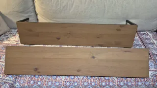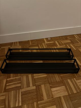 Se venden dos baldas de pared de IKEA. Son ideales para añadir espacio de almacenamiento en cualquier habitación. - Baldas de madera con soportes de metal. - Diseño moderno y funcional. medidas 80 x 25 x 3
