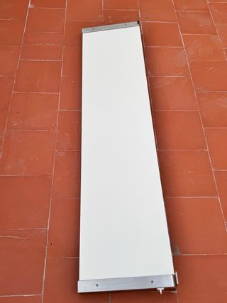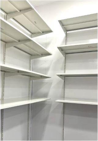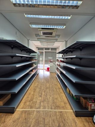 Sistema de estantería modular de metal, ideal para organizar espacios. - Sistema de rieles y soportes. - Estantes de metal resistentes. - estantería Sistema cremallera: adaptable a distintas alturas - Disponibles: 12 Metros lineales totales: 12m x 4 baldas - 12 uds de 80cm : 9,60m - 4 uds de 60cm: 2,4m Precio - precio nueva (nov 2022): módulo 60cm 79€, módulo 80cm 85€, total 12m de estantería con 4 baldas cada una: 1.150€ Venta segunda mano: - si se compran módulos separados, precio por módulo de 80cm es 50€, módulo de 60cm es 45€ - Descuento adicional si compran todas las estanterías (-60% sobre precio original): 460€