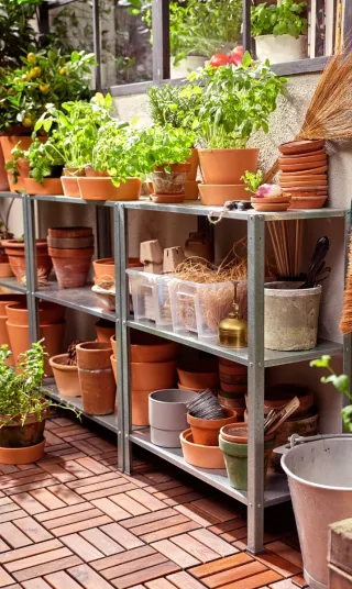 Estantería metálica de cuatro alturas, ideal para organizar tus objetos.