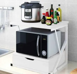 BAKAJI Estantería móvil para microondas, Estructura de Metal con Estante de Madera MDF y cajón Organizador para Utensilios de Cocina, diseño Moderno, 54 x 35 x 50 cm, Color Blanco, Mediano Material Metal Madera Nogal Tipo de montaje Montaje en pared Tipo de habitaciónCocina Tipo de estanteEstante de niveles Número de estantes1 Función especialResistente