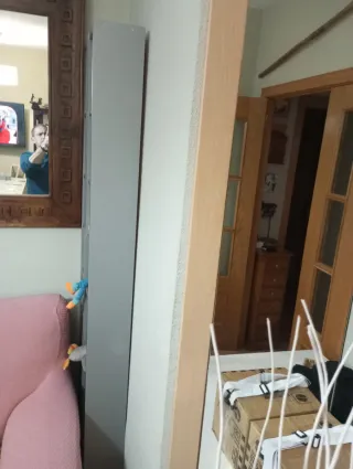 Estantería alta con un diseño moderno, elegante y funcional. Medidas: ancho 120 cm, alto 185 cm, fondo 35 cm. - Estructura de metal resistente. - Estantes ajustables: o 27 cm, o 34 cm - Fabricada en España No se envía, hay que venir a recogerla (28034 Madrid). Se entrega desmontada