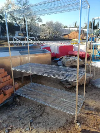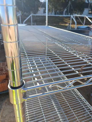 Estantería de metal inox. - Construcción robusta en metal. - Diseño de rejilla en cada nivel. 2 estanterías 152 x 61 x 200 122 x 61 x 200 90€ cada una llevando las 2