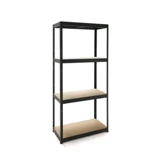 Estantería de cuatro niveles con estructura metálica y baldas de madera. - Diseño moderno y funcional. - Ideal para organizar espacios en el hogar o garaje. - Fácil montaje.