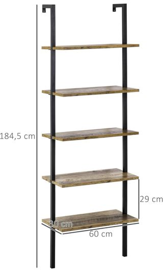 Estantería de estilo industrial con estructura metálica y baldas de madera. - Diseño de 5 niveles. - Marco de metal negro. - Baldas con acabado imitación madera.