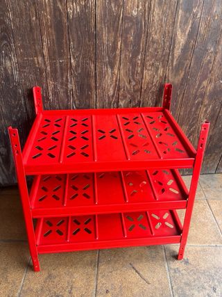 Estantería de metal Orsy de Würth, nueva sin estrenar. Es de color rojo y tiene tres niveles. 3 Estantes. Diseño con perforaciones decorativas. Estructura robusta y estable. Ideal para apilar o combinar con otros módulos y tener el taller ordenado. NO ENVÍO