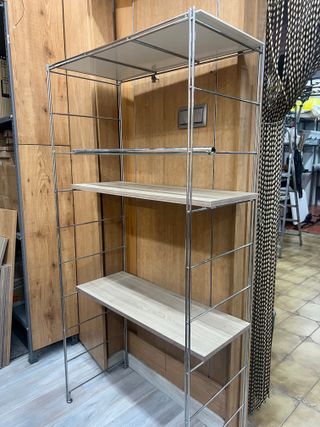 SE DESMONTA PARA RECOGER 170 mide la leja mas larga Estantería de diseño moderno con baldas de madera y estructura metálica. - Baldas de madera clara. - Soportes y estructura en color plata. - Diseño modular adaptable.