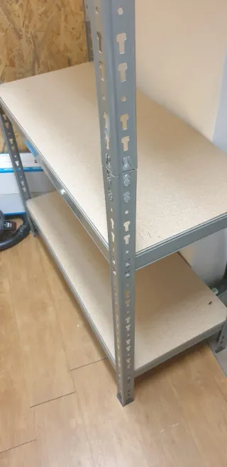 Estantería metálica de cuatro niveles, ideal para organizar espacios. - Estructura robusta. - Diseño de fácil montaje. - Superficies amplias para almacenamiento. 15€/unidad Las 5 unidades - 50€
