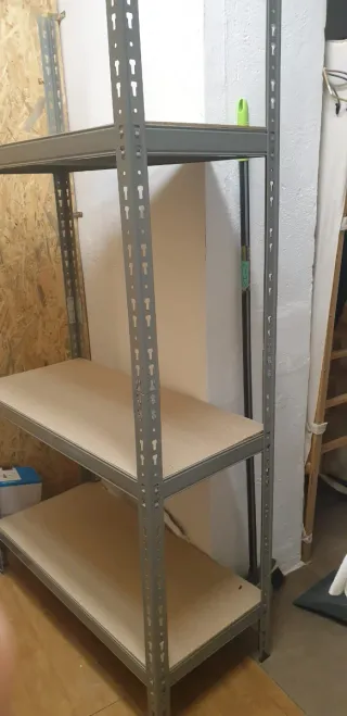Dos estanterías de metal de color gris, ideal para organizar espacios. En óptimas condiciones se venden por separado a 20€ una o 40€ las dos - Estructura robusta. - Cuatro baldas. - Diseño sencillo y funcional.