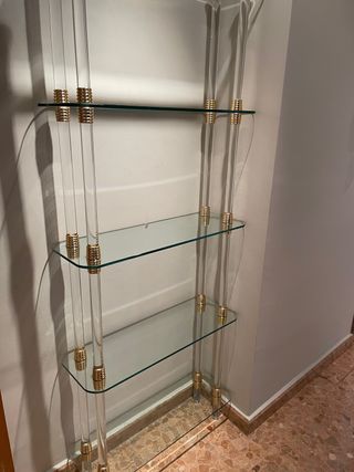 Estantería de cristal y metal dorado