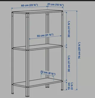 Estantería de tres baldas con estructura metálica. - Diseño moderno y funcional. - Ideal para organizar espacios. - Fácil de montar. Tengo 2 unidades. Precio unidad
