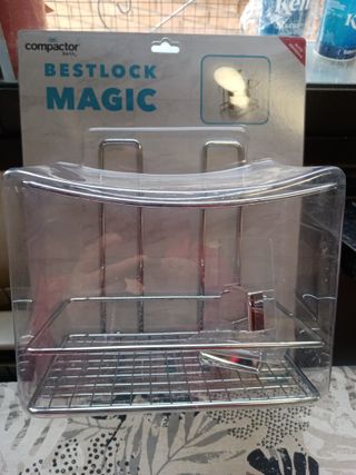 Estantería de pared para baño de la marca Compactor, modelo Bestlock Magic. - Diseño moderno y funcional. - Acabado plateado y transparente. - Fabricada en metal y plástico.