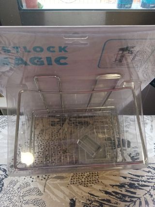 Estante extensible para microondas o similar. Metal lacado en negro. Crea espacio adicional de almacenamiento en la cocina. Permite colocar electrodomésticos sobre la balda o bajo ella. Material: Acero al carbono + Hierro Longitud: Extensible 40-60cm Ancho: 36 cm Altura: 42 cm Usado pero en perfectas condiciones, se entrega limpio.