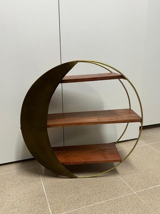 Estantería decorativa con diseño de luna. - Marco circular metálico. - Tres baldas de madera. - Acabado dorado. Estado como nueva! de la marca Urban Outfiters